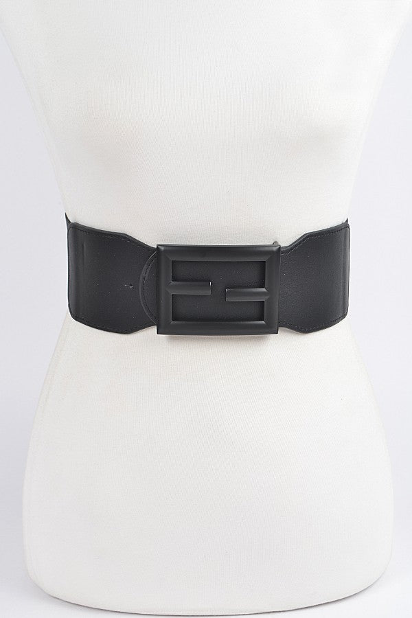 Colored square buckle elastic belt, available in black or nude beige.