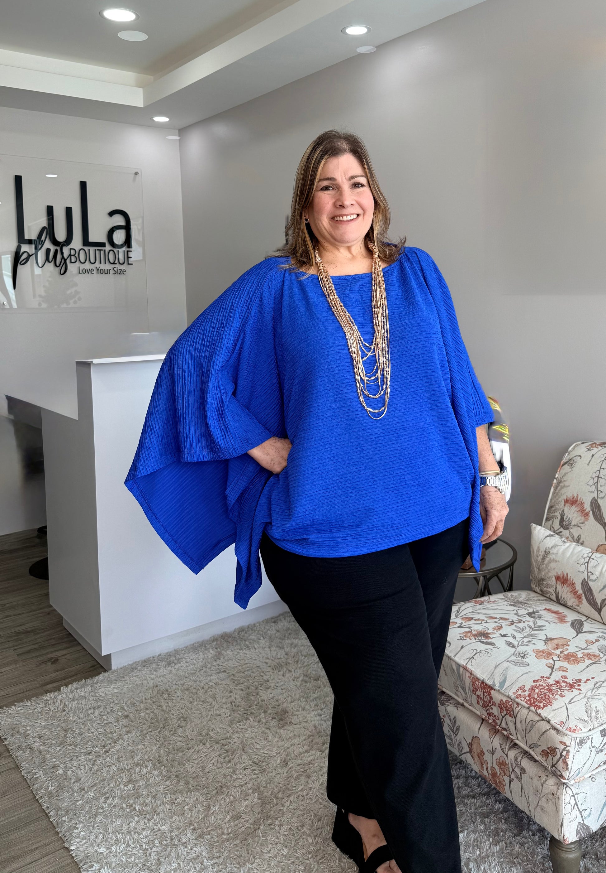 One size tunic top, available in royal blue, burgundy red and rust brown.