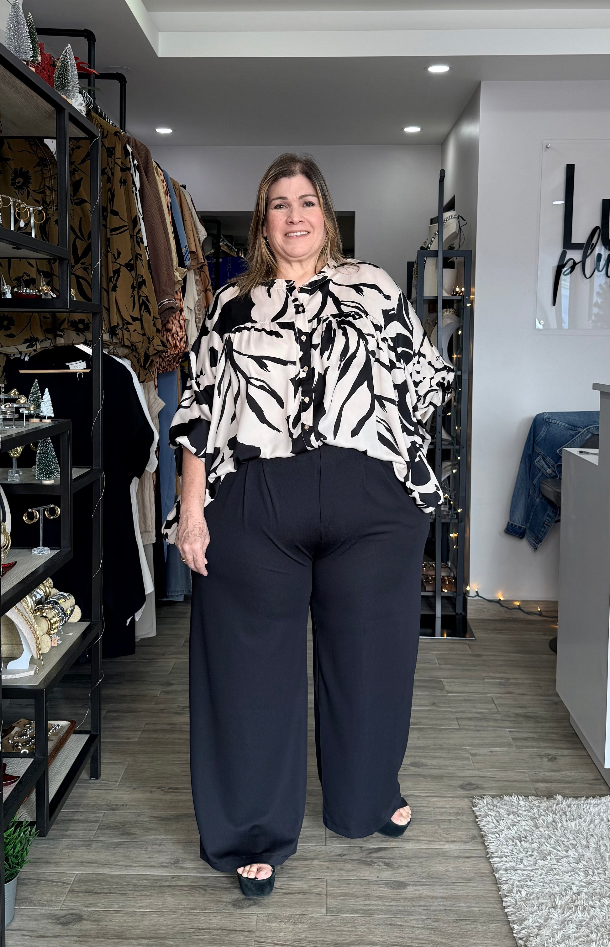 Pull on, elastic high waist, wide leg micro waffle pleated trousers. Side pockets, four way stretch. Available in black, camel brown, light gray. 93% Polyester 7% Spandex.